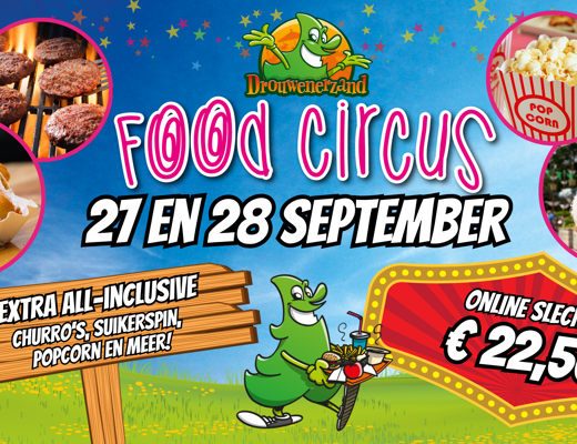 Hier wil je bij zijn: het eerste Food Circus van Drouwenerzand Attractiepark! Geniet naast onze populaire All-In formule van nòg gratis meer lekkers: