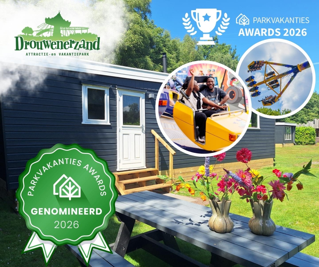Wij hebben fantastisch nieuws: Drouwenerzand Attractiepark én Vakantiepark zijn genomineerd voor de Parkvakanties Award 2026 in de categorie Vakantiepark met Pretpark! Een mooie erkenning waar we stiekem best trots op zijn.